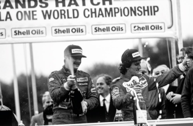 6 octobre 1985 – Grand Prix d’Europe à Brands Hatch: Alain Prost devient le premier pilote français à remporter le titre de champion du monde de F1. Photo Paul-Henri Cahier