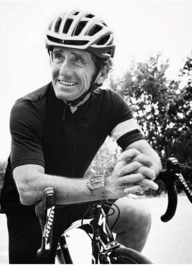 Alain Prost à vélo avec la montre Richard Mille « RM 70-01 Tourbillon Alain Prost » conçue spécialement pour les cyclistes. Photo Richard Mille